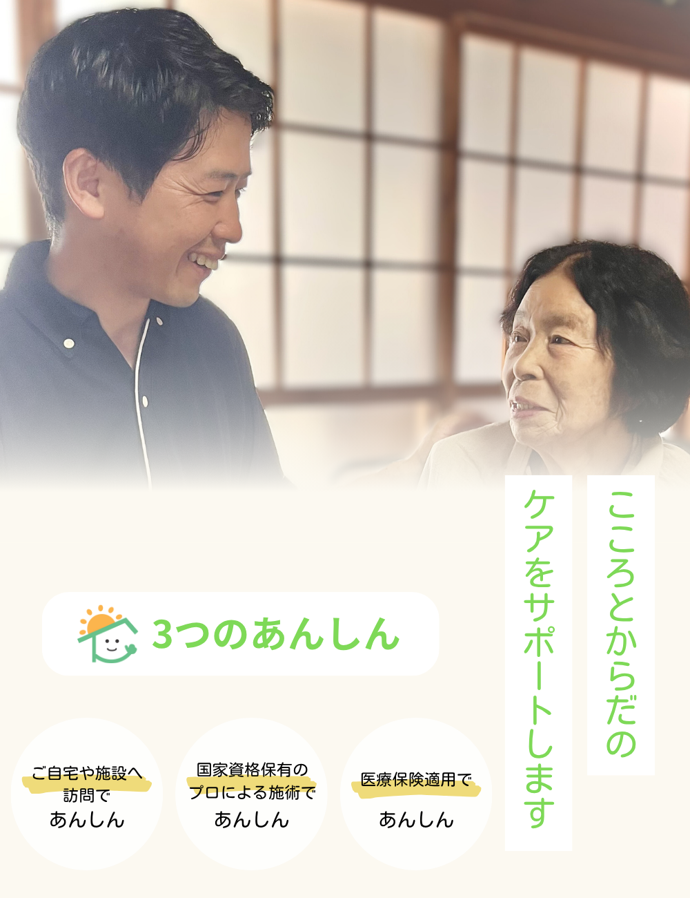訪問鍼灸マッサージがあなたやご家族のお悩みを解決いたします。